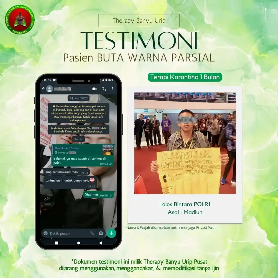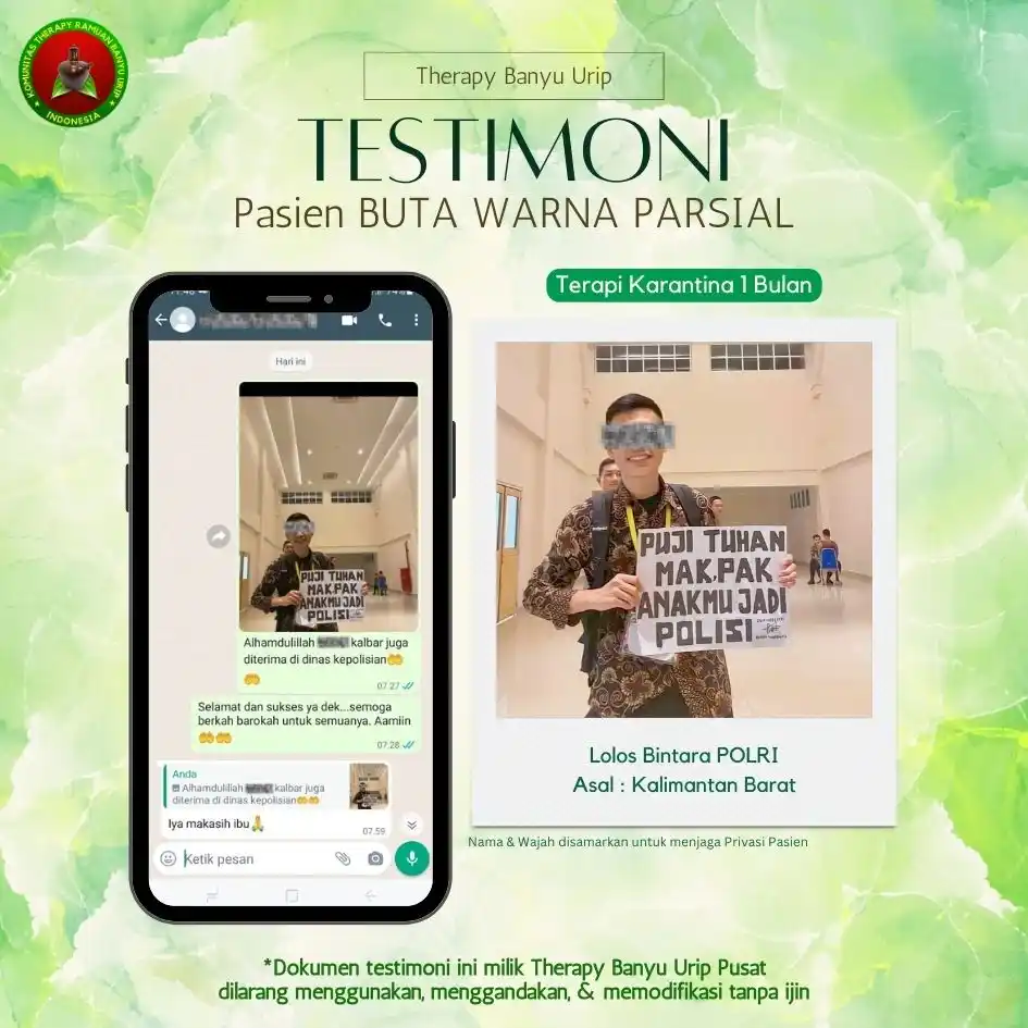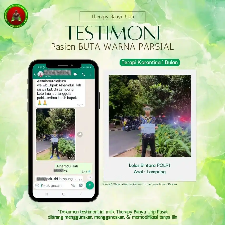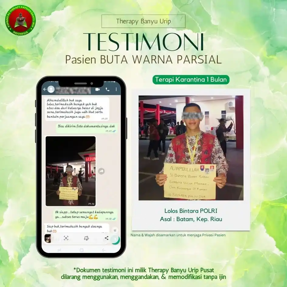 Cerita keberhasilan dari mereka yang berhasil melewati tes buta warna setelah menjalani terapi di Therapy Banyu Urip. Bukti nyata bahwa harapan untuk meraih cita-cita tetap terbuka.